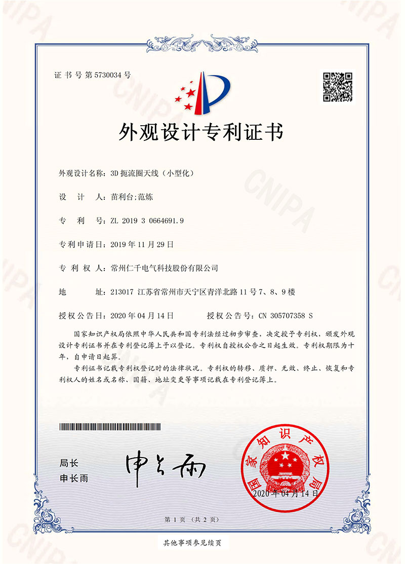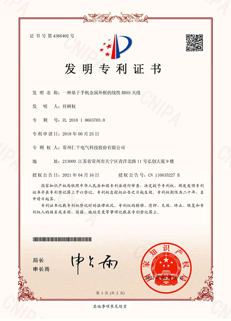 5G天線振子的生產(chǎn)工藝證書(shū)