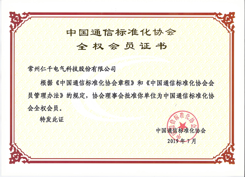 中國(guó)通信標(biāo)準(zhǔn)化協(xié)會(huì)全權(quán)會(huì)議證書(shū)